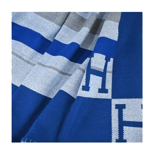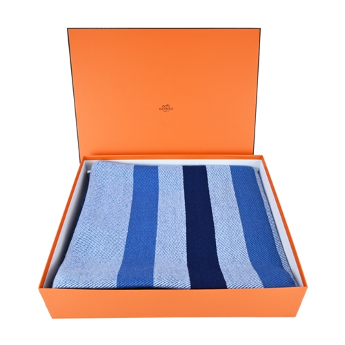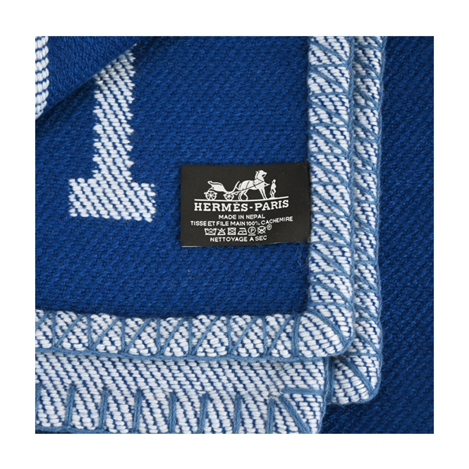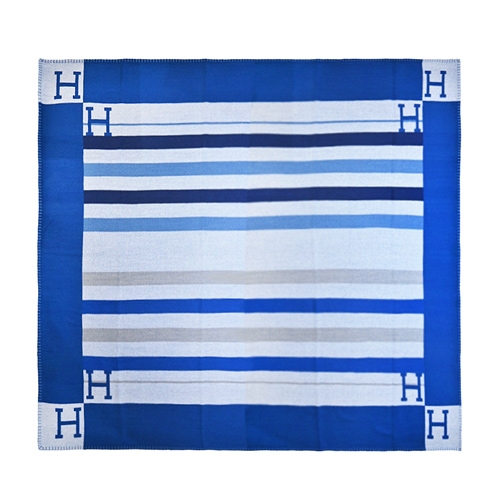 Hermes H直紋線條 100% 喀什米爾羊毛地毯(寶藍/淺藍)