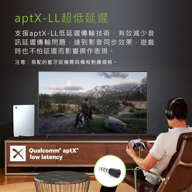 支援aptX-LL低延遲傳輸技術,有效減少音訊延遲傳輸問題,達到影音同步效果,遊戲時也不怕延遲而影響操作表現。