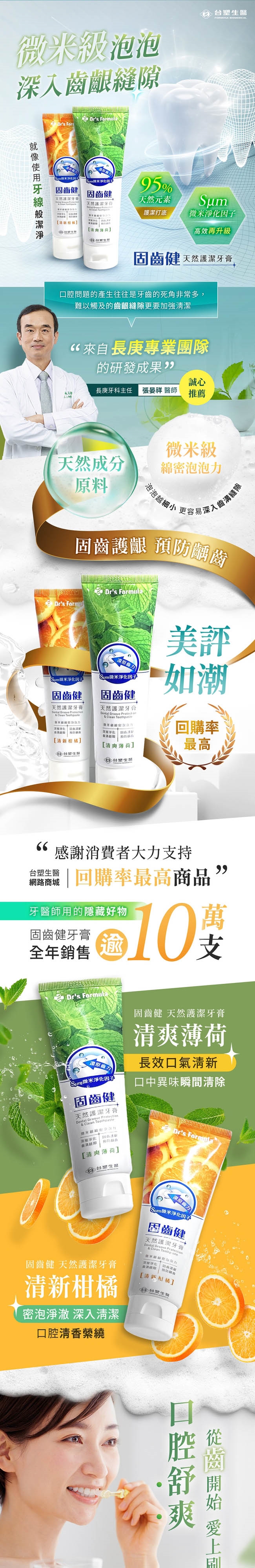 品名:《台塑生醫》固齒健天然護潔牙膏(清新柑橘)110g(6條/組)