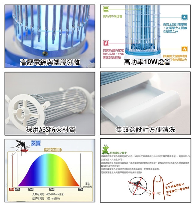 ◎利用捕蟲燈管來引誘蚊子、蒼蠅、飛蛾、果蠅、白蟻等昆蟲進入,滅蚊器內,然後由對人沒危險的直流電觸殺