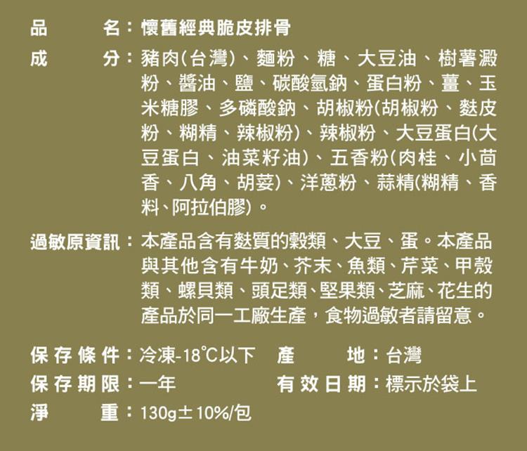 【過敏原資訊】本產品含有麩質的穀類、大豆。本產品與其他含有牛奶、蛋、芥末、魚類、芹菜、甲殼類、螺貝類、頭足類、堅果類、芝麻、花生的產品於同一工廠生產,食物過敏者請留意。
