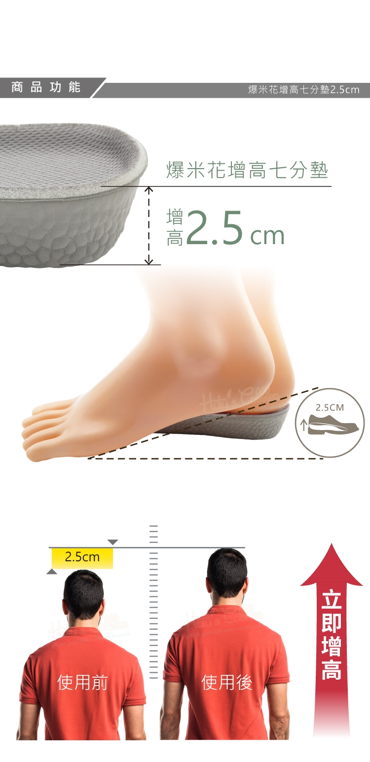 增高2.5cm,隱形增高,明顯效果,塑造大長腿,行走更自信