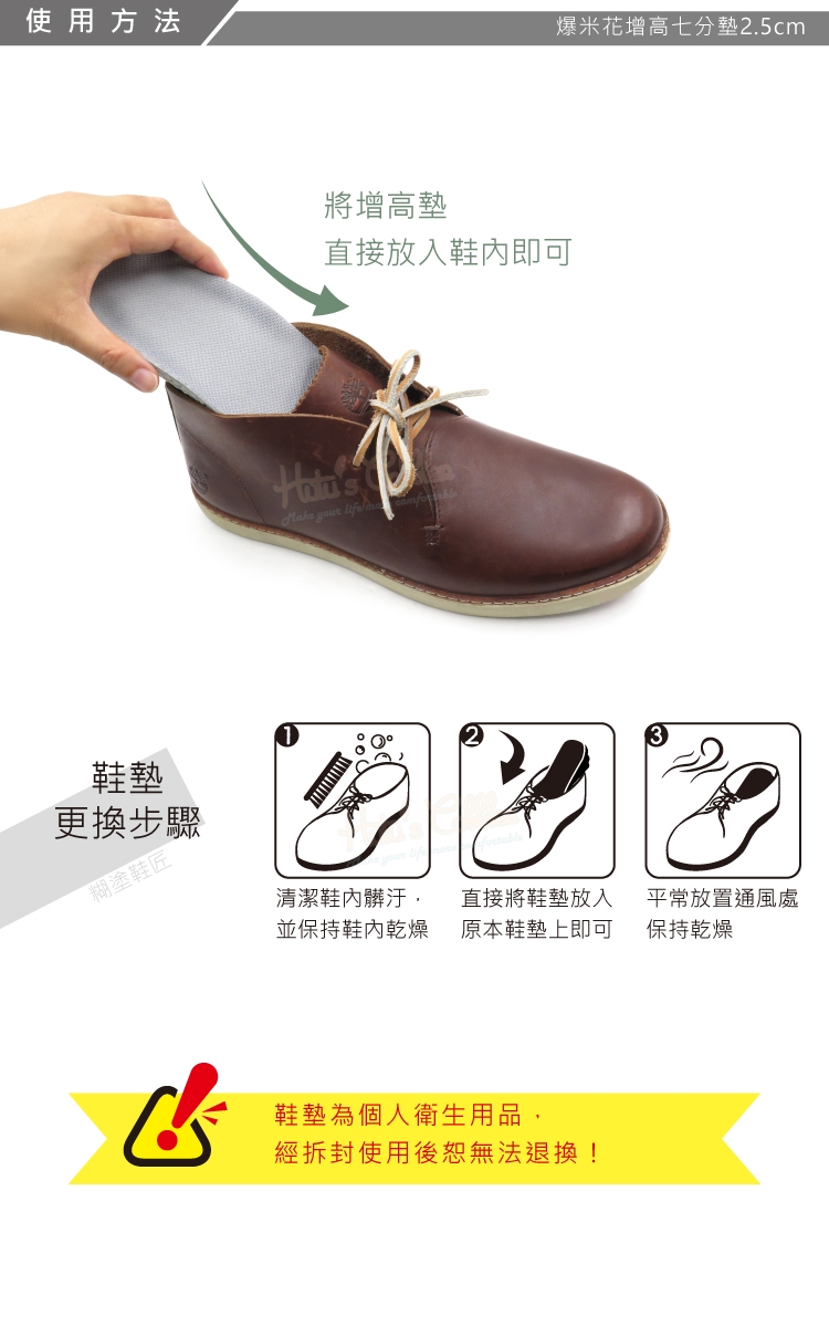 將增高墊直接放入鞋內即可