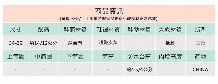 2.鞋類商品依功能及用途之不同,鞋底各有其止滑係數之個別不同,使用鞋類商品請用於正常平坦之路面,非雨鞋或雨靴類商品,請避免穿著於下雨濕滑路面上行走。