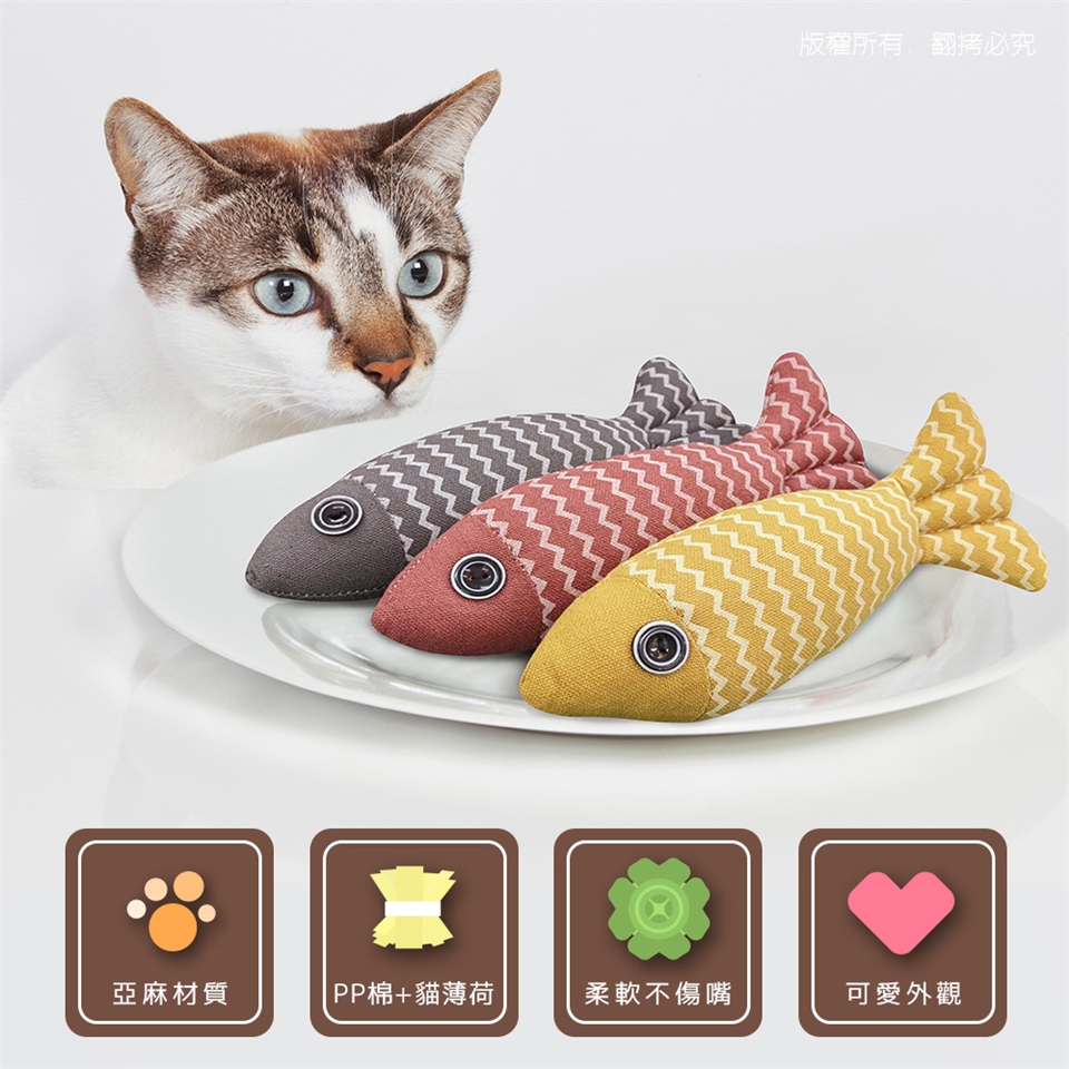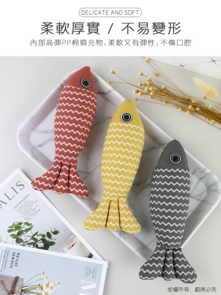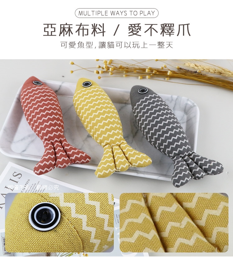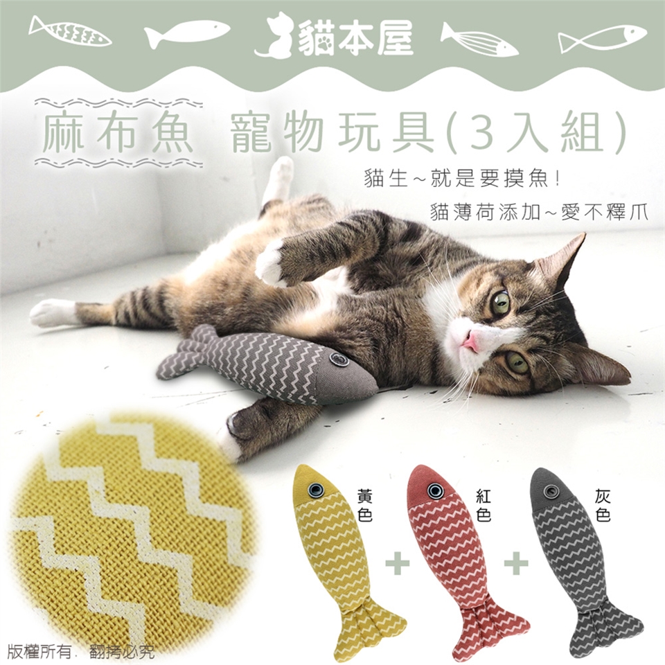 貓本屋 麻布魚 寵物玩具3入組(紅色+黃色+灰色)