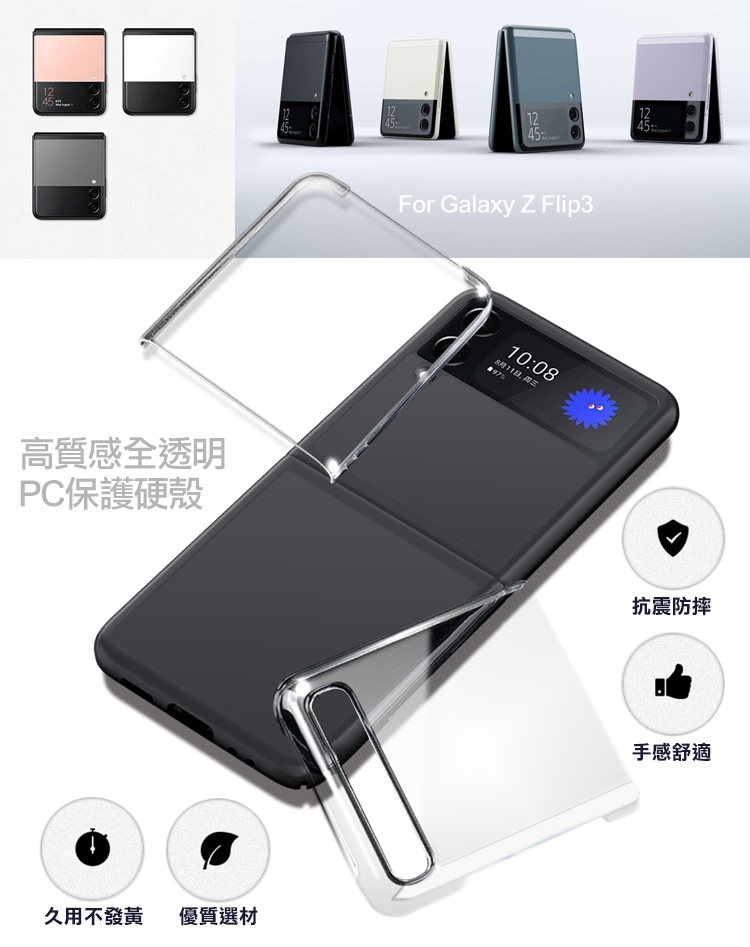 CityBoss for 三星 Samsung Galaxy Z Flip 3 高質感透明PC亮面保護硬殼