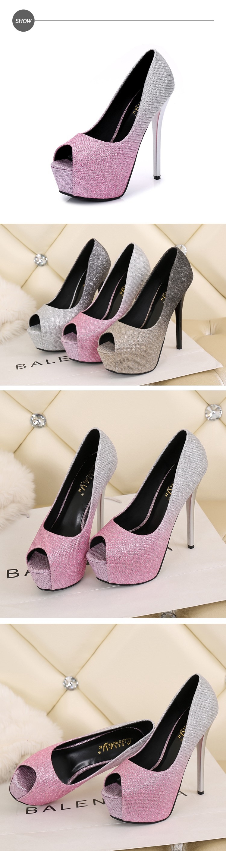 【miss.k】跟鞋 高跟鞋/璀璨漸層亮絲布面魚口露趾防水台性感高跟鞋 粉 (2款任選)