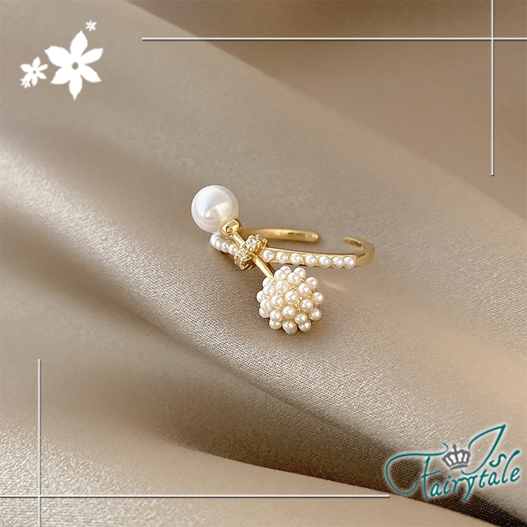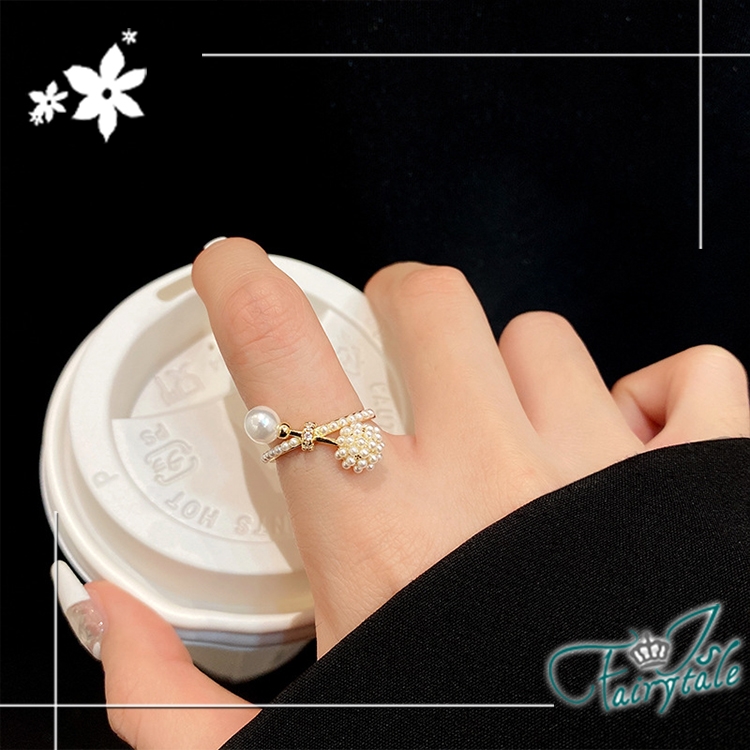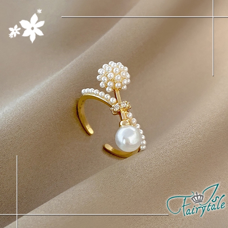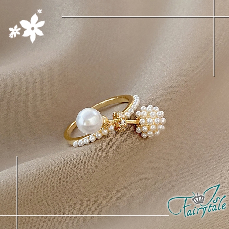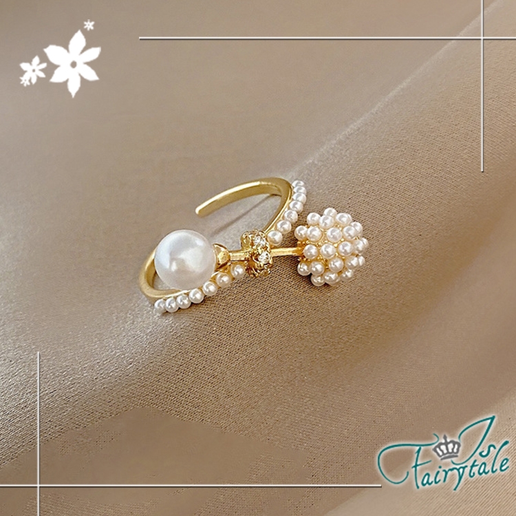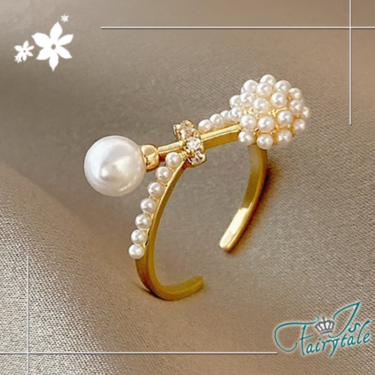 不規則X型珍珠交錯設計,彈性開口戒圍不挑尺寸,