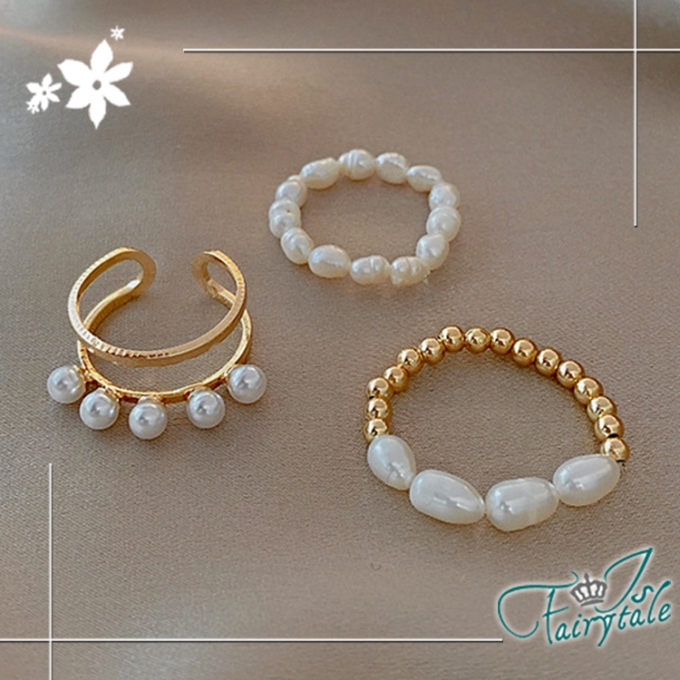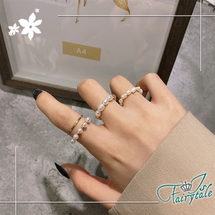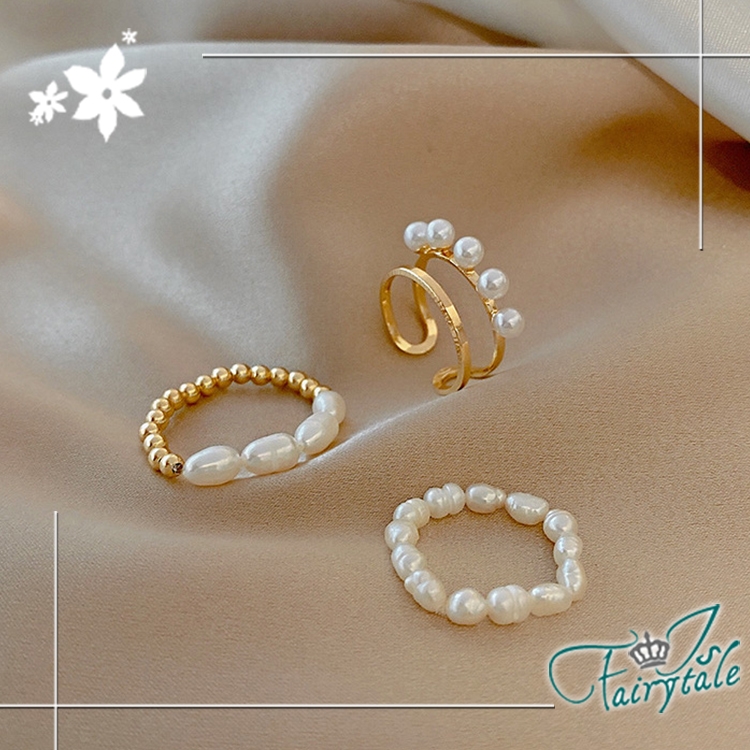彈性魚線珍珠串鍊,彈性開口戒圍適用大部分尺寸,