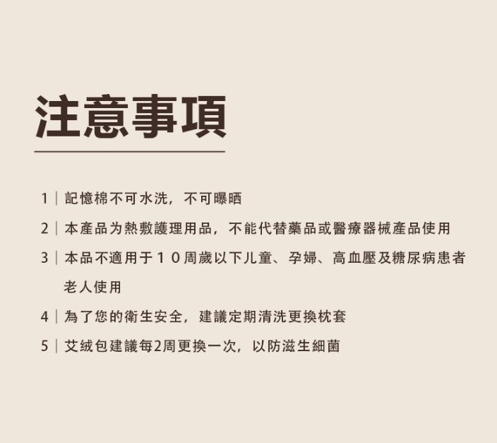 2.本產品為熱敷護理用品,不能代替藥品或醫療器械產品使用