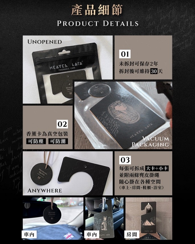LAFA香薰卡使用 #瑞士奇華頓Givaudan 高品質精油製作的,為香水大牌 Chanel、Dior、Gucci 御用的精油大廠,品質很有保障