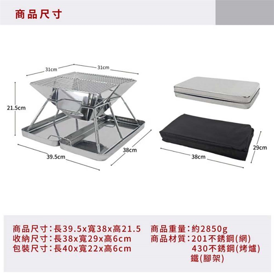 商品材質:201不銹鋼(網)+430不銹鋼(烤爐)+鐵(腳架)