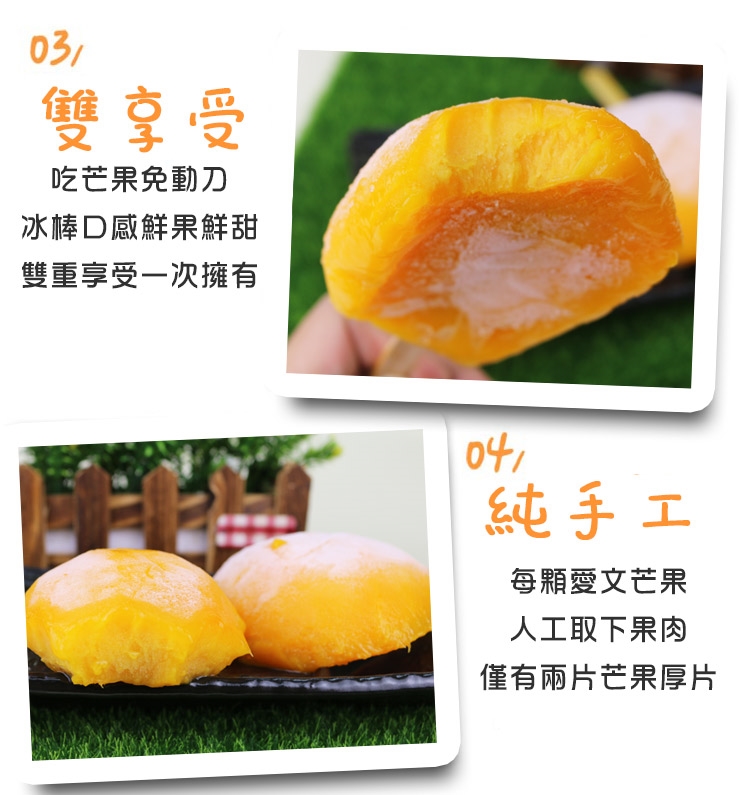 ◆吃芒果免動刀,冰棒口感鮮果鮮甜,雙重享受一次擁有,夏天最棒的冰品,純水果製作大人小孩都能放心食用