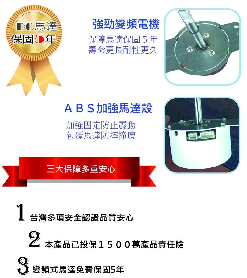 ◆ DC變頻馬達保固5年品質有保障