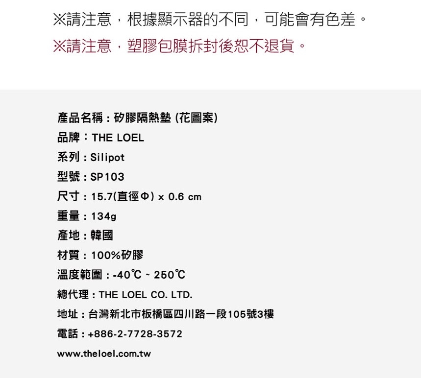 產品名稱:THE LOEL 耐熱止滑矽膠隔熱墊