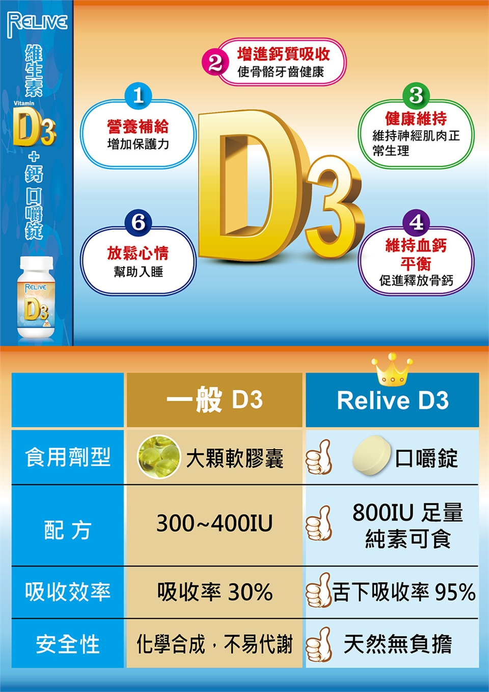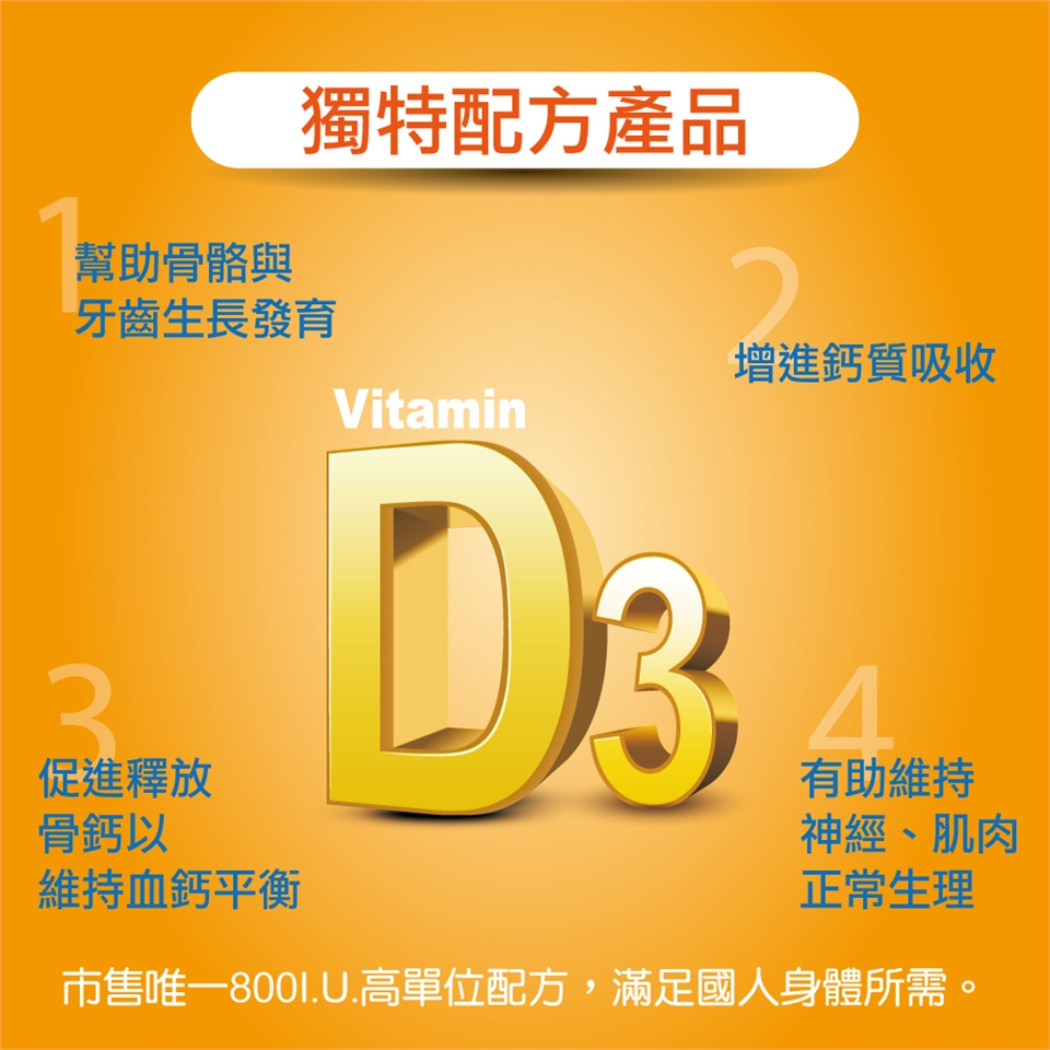 每日參考值:維生素D3 10微克、鈣 1200毫克