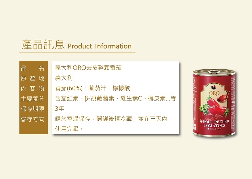 .義大利ORO去皮整顆蕃茄:義大利麵、比薩、湯品、甜點、飲料、或任何蕃茄料理