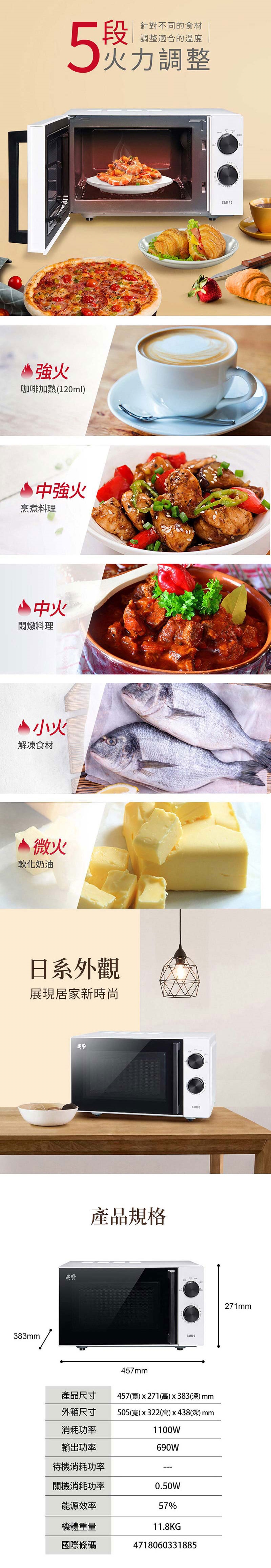 ◆5段火力控制,最高可達700W火力,可針對不同食材所需進行調整。