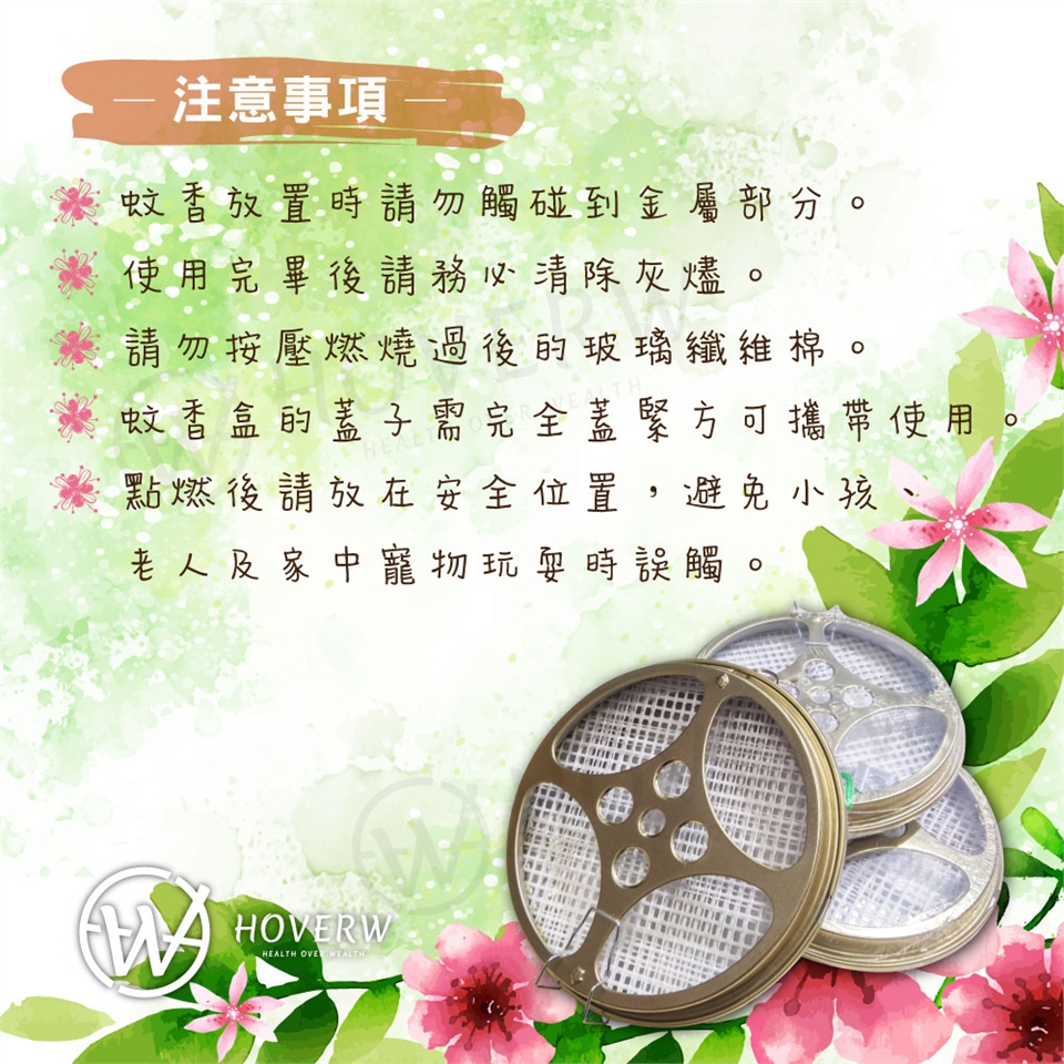 1. 蚊香放置時請勿觸碰到金屬部分。