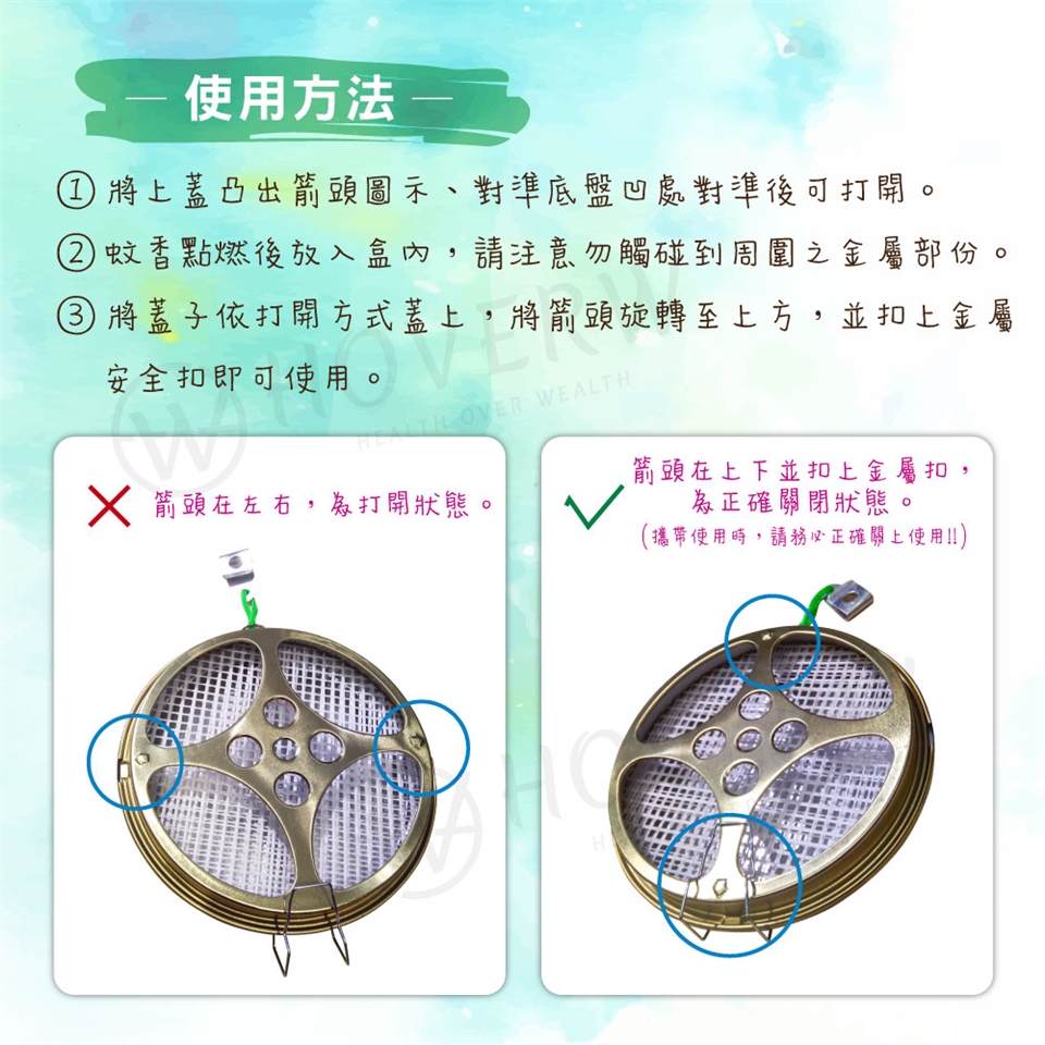 4. 蚊香盒的蓋子需完全蓋緊方可攜帶使用。