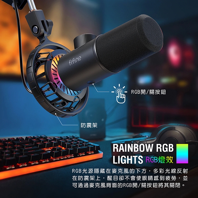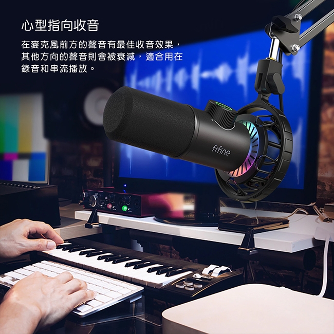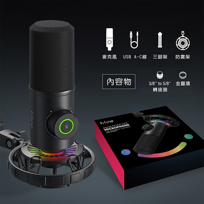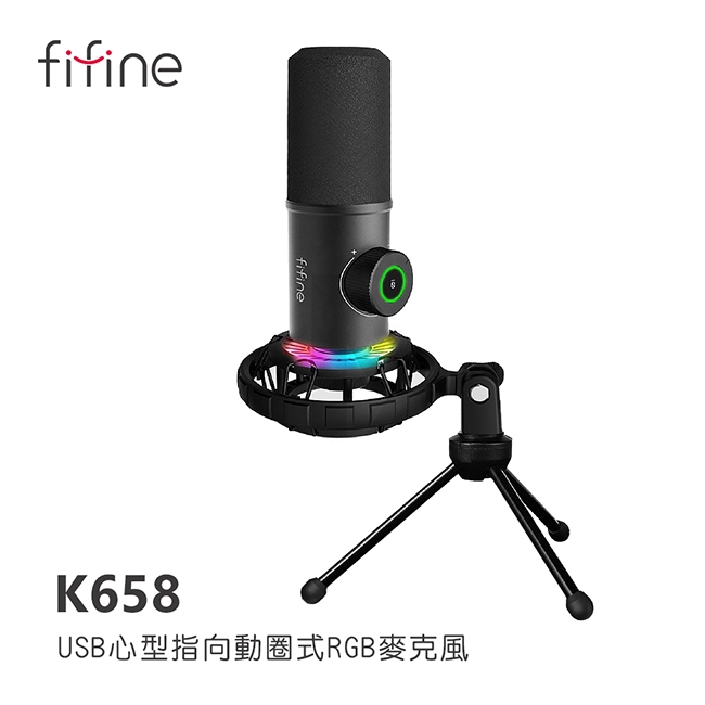 【FIFINE K658 USB心型指向動圈式RGB麥克風】