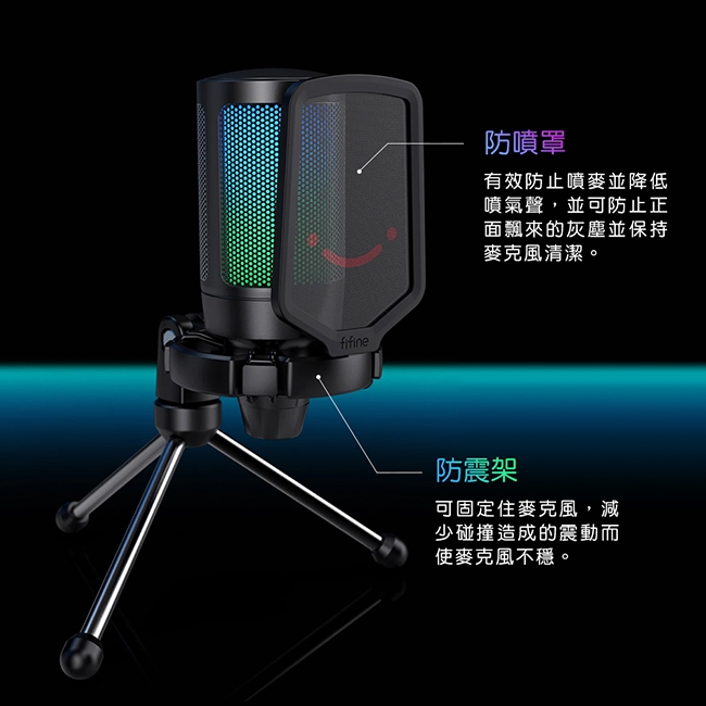 【FIFINE A6V USB心型指向電容式RGB麥克風】