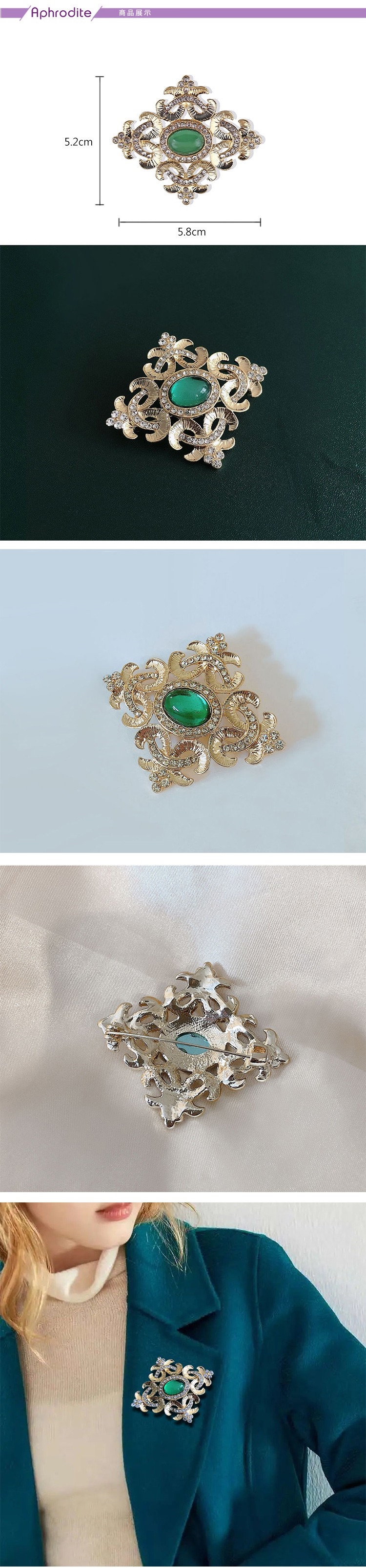 【愛芙晶鑽】復古巴洛克綠寶石水晶美鑽造型胸針 造型胸針 美鑽胸針