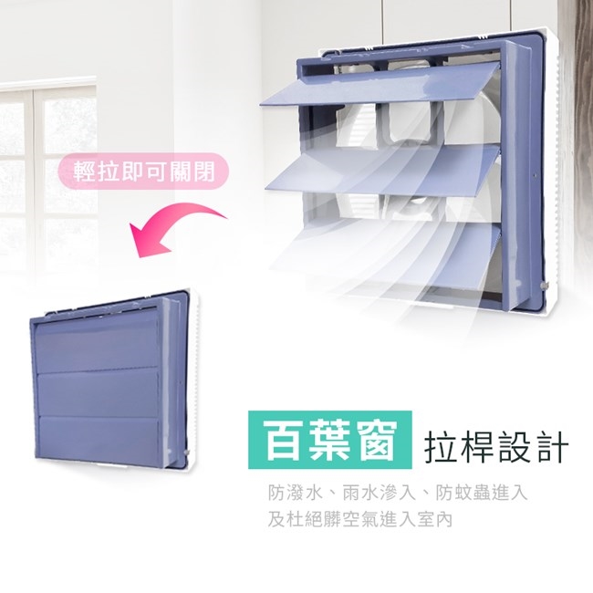 ◎拉桿的百葉窗設計,防潑水、防雨水滲入、防蚊蟲進入及杜絕髒空氣進入室內