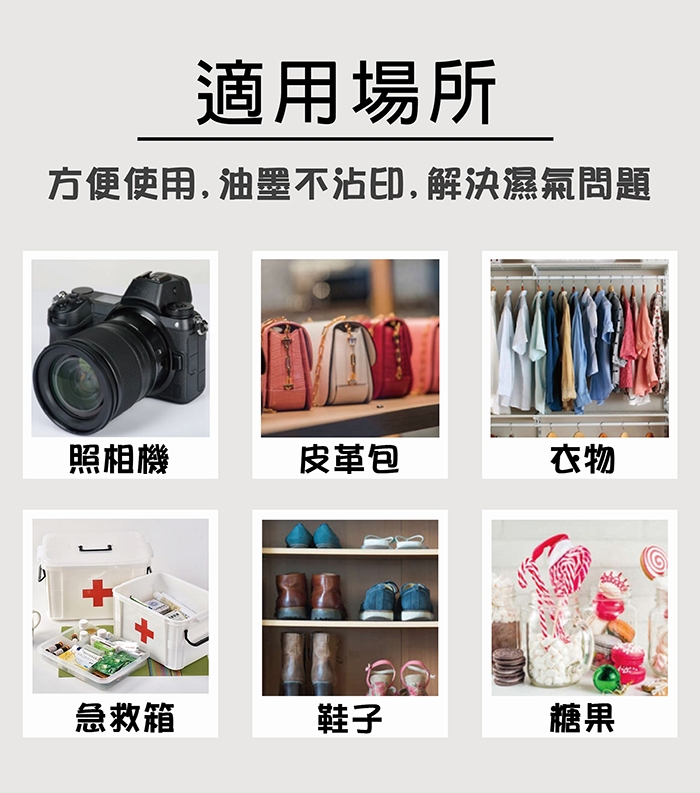 「安全生石灰乾燥劑」適用範圍包括:海苔食品 (烤海苔、炸海苔、海苔酥)、脆片食品 (肉紙、地瓜片)、米果食品 (米果、仙貝)、堅果食品 (腰果、開心果)、網路行銷通路 (網購中心、拍賣、商城)、3C、日用品零售通路 (相機行、電子材料行、各大賣場)。