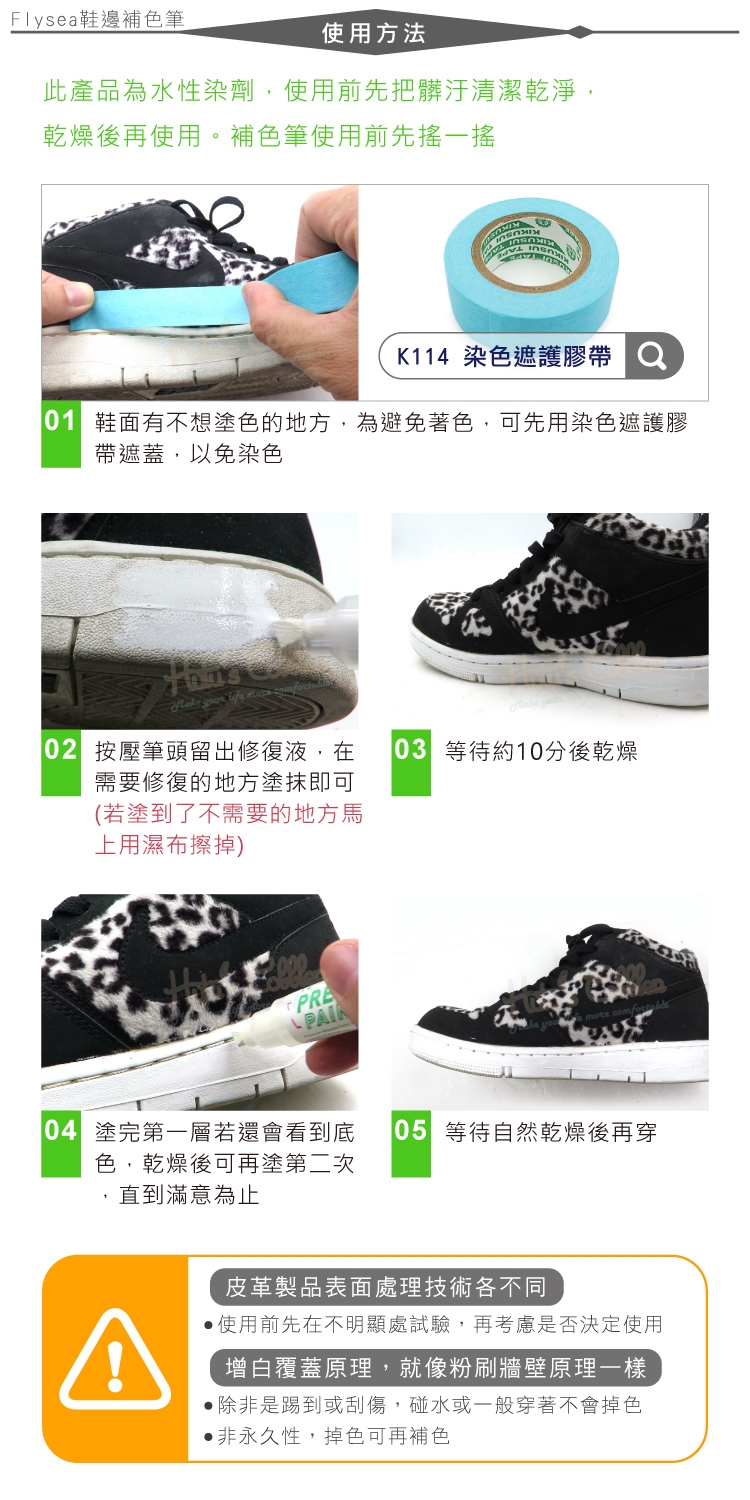 3.鞋面有不想塗色的地方,為避免著色,可先用染色