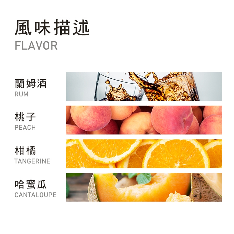 蘭姆酒香、桃子、青蘋果、柑橘、柚子、哈蜜瓜