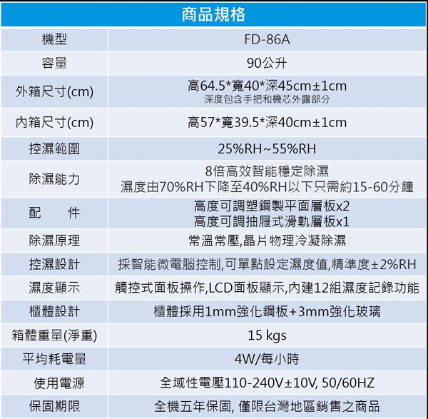 防潮家 90公升旗艦型智能指針8倍高效電子防潮箱 FD-86A