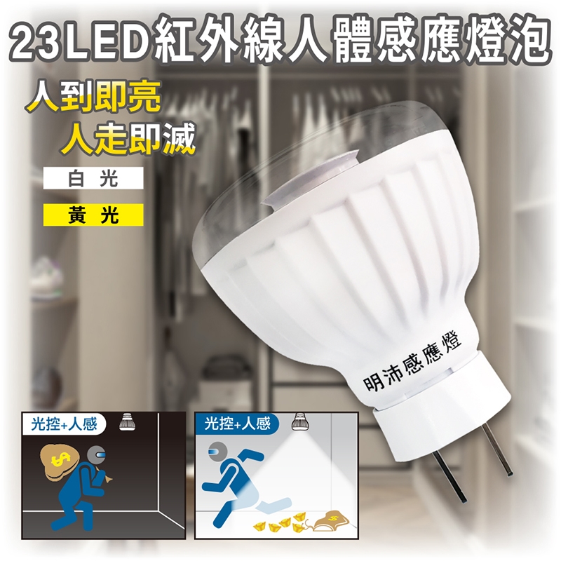- 紅外線感應:人進入感應範圍內有微光燈不亮、空間全暗燈才亮。
