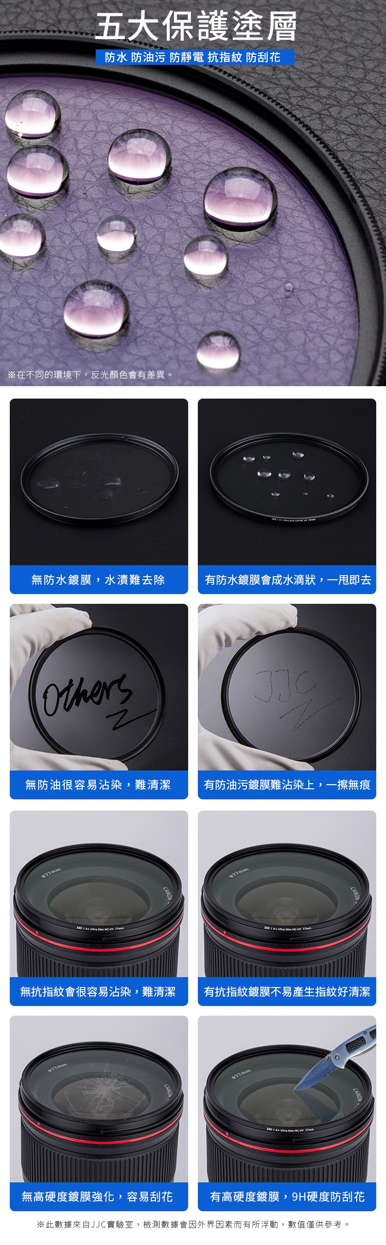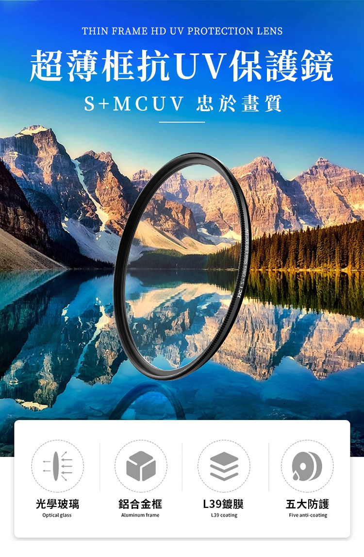 ●【品名】JJC防刮抗靜電S+MCUV濾鏡77mm濾鏡77mm保護鏡F-WMCUV77(2.4mm超薄框;38層多層膜L39;德國SCHOTT光學玻璃;透光率≧99.5%,硬度9HD)