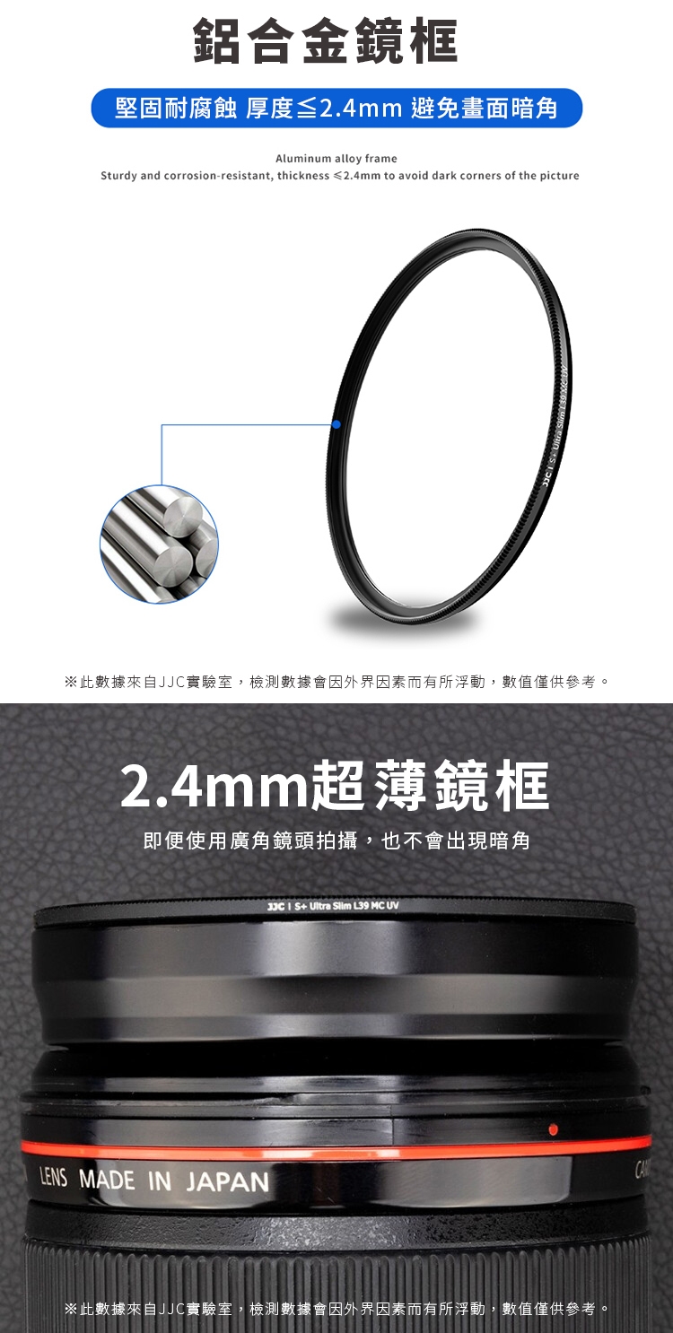 ●框厚2.4mm是屬於“極度薄等級”,目前販售的保護鏡裡「最薄」的款式;特別適合廣角鏡頭,在廣角端更不容易有暗角(註:"不保證"一定沒有暗角喔)