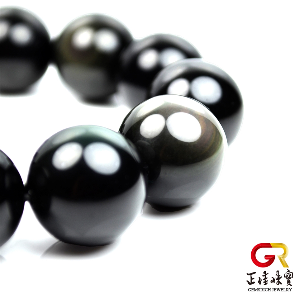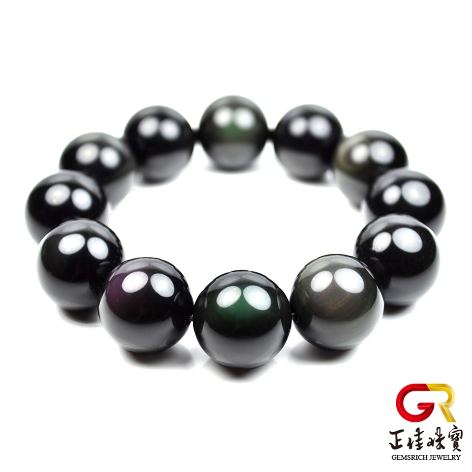 彩虹黑曜石 彩虹雙眼黑耀石 彩虹黑曜石手珠 18mm|日本彈力繩