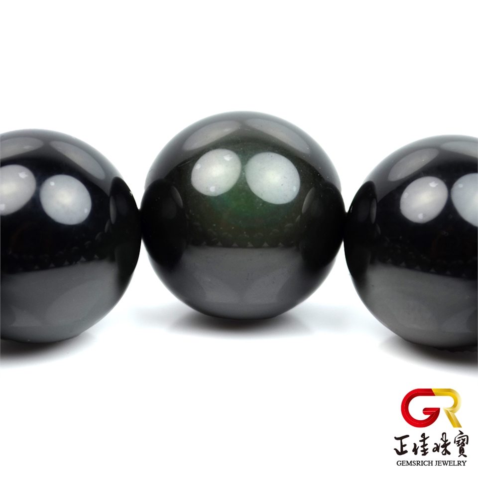 顏色:天然雙眼彩虹黑曜石(每粒圓珠皆有閃光)
