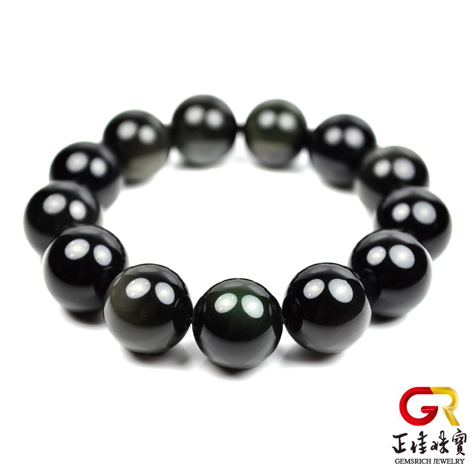 彩虹黑曜石 彩虹雙眼黑耀石 彩虹黑曜石手珠 16mm|日本彈力繩