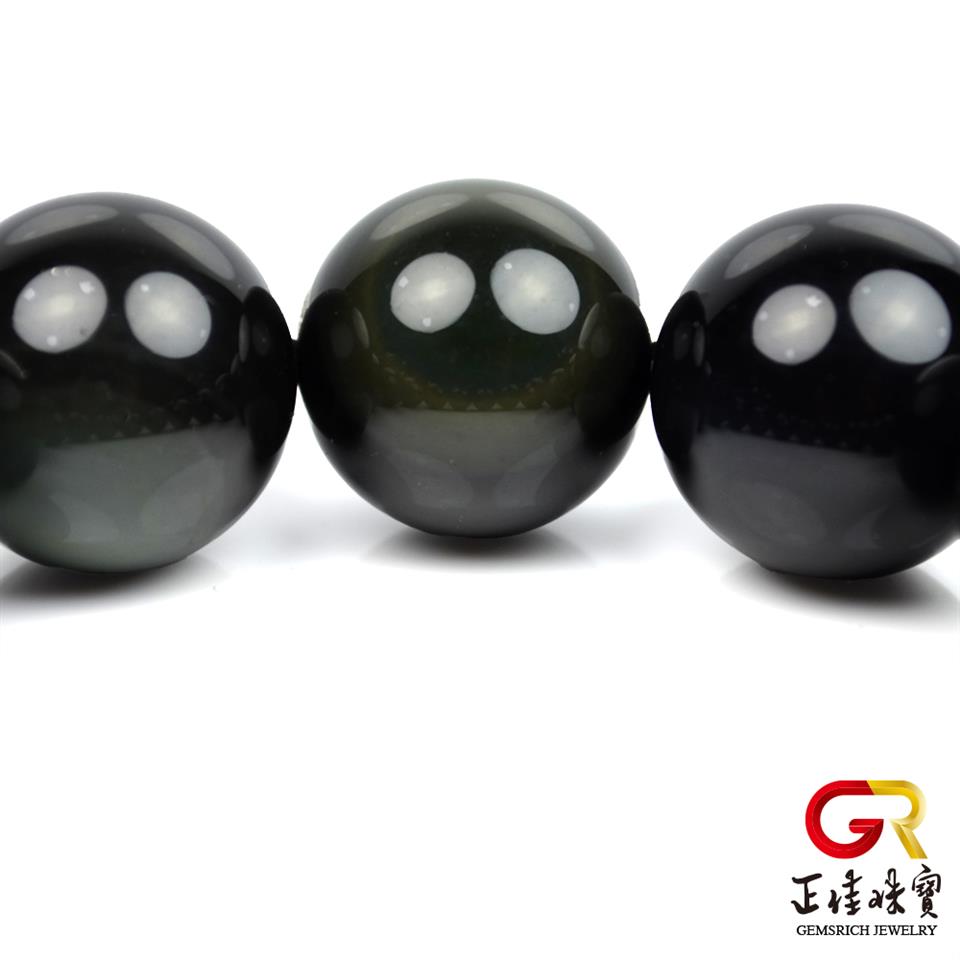 顏色:雙眼彩虹黑曜石(每粒圓珠皆有閃光)