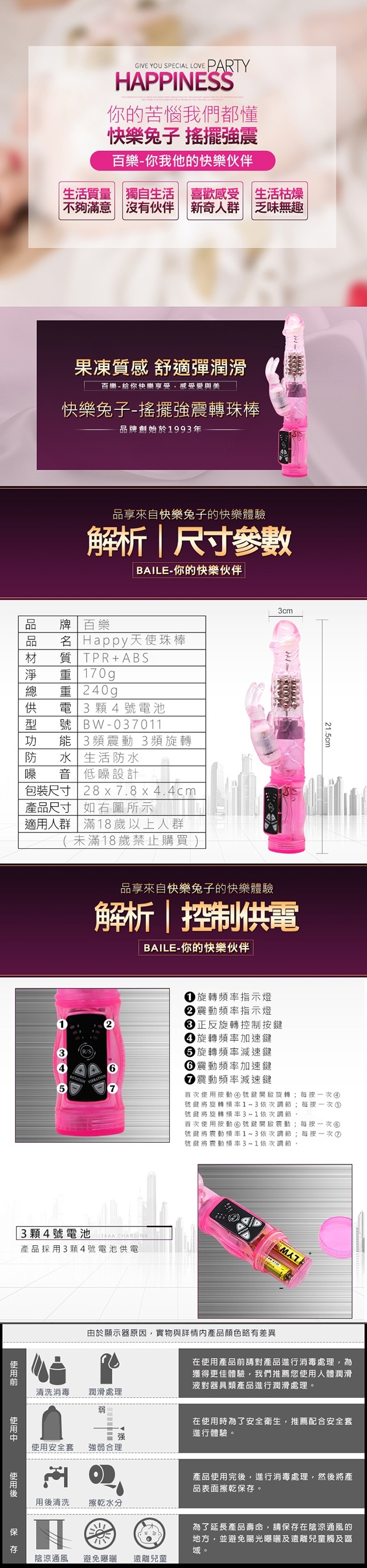 規格:電壓1.5V震動 / 3頻滾珠旋轉×3頻震動 / 粉色