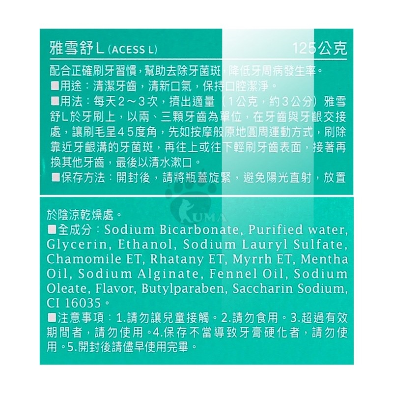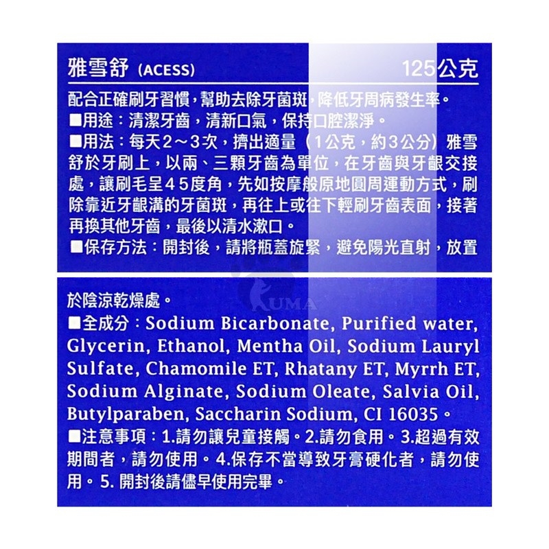 *中文品名:雅雪舒(ACESS)/雅雪舒L(ACESS L)