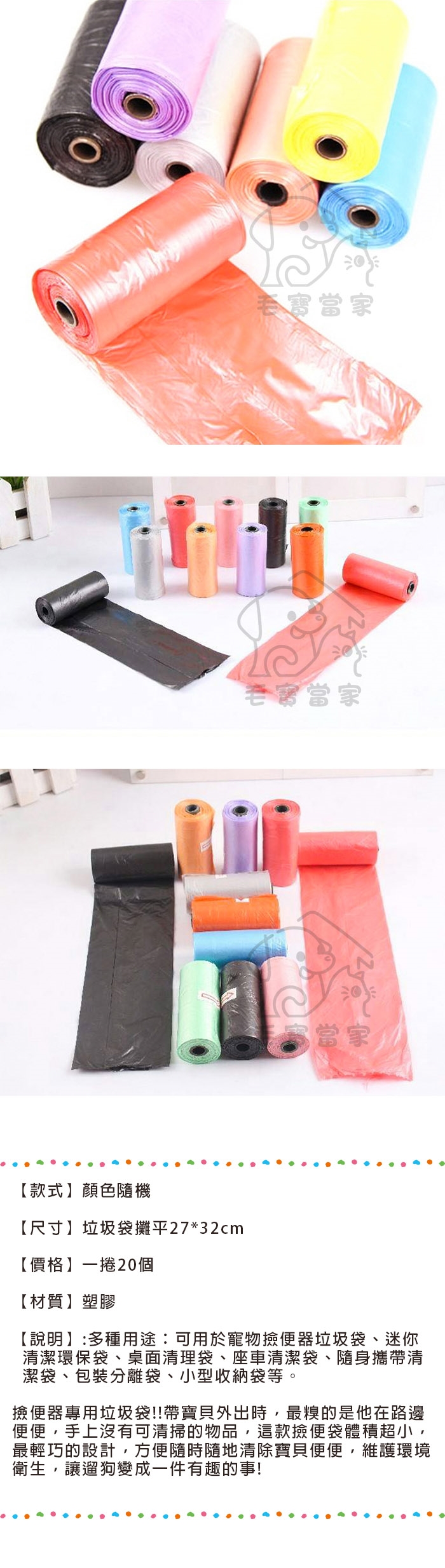 多種用途:可用於寵物撿便器垃圾袋、迷你清潔環保袋、桌面清理袋、座車清潔袋、隨身攜帶清潔袋、包裝分離袋、小型收納袋等..