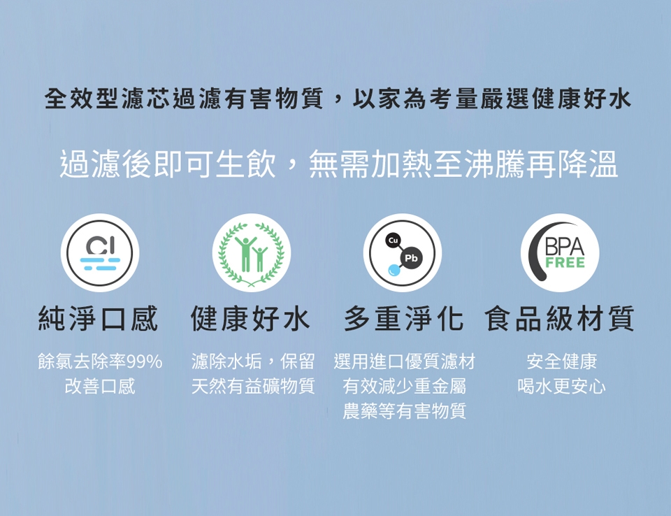 ✔食品級材質 ✔即濾即飲 ✔多重淨化 ✔新鮮純淨 ✔健康好水
