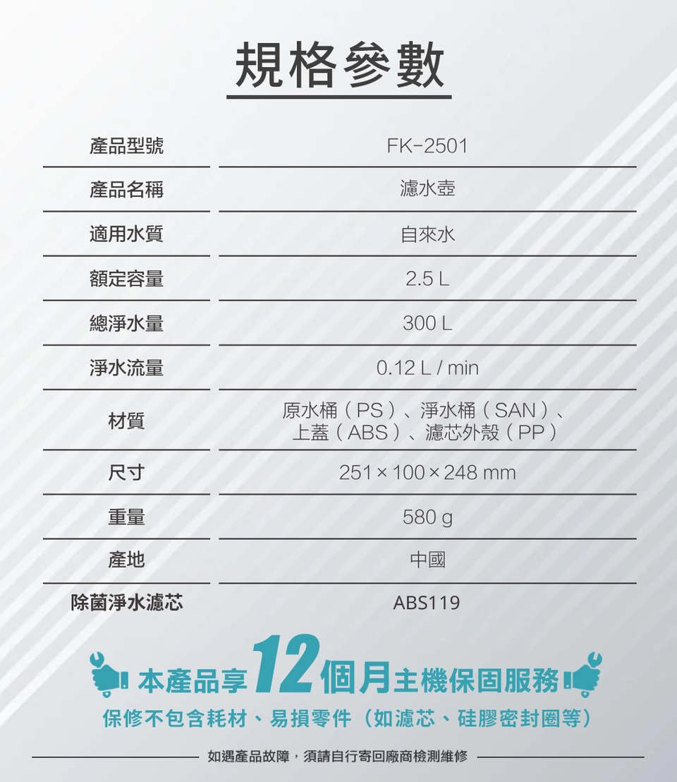適用機種型號:瞬熱型淨水器IW-2701/全效型濾水壺 FK-2501