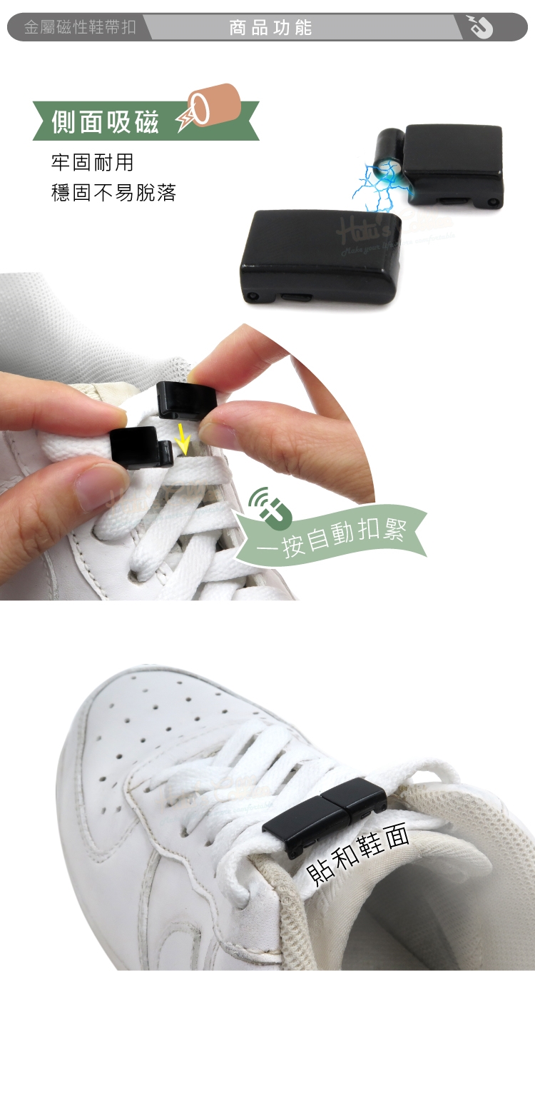 側面吸磁:牢固耐用,穩固不易脫落,一按自動扣緊,貼和鞋面