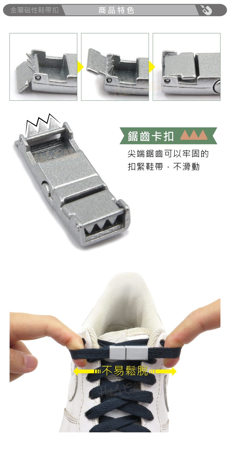 鋸齒卡扣:尖端鋸齒可以牢固的扣緊鞋帶,不易滑動