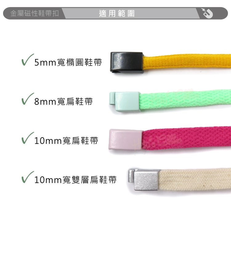 適用於5mm寬橢圓鞋帶、8mm寬扁鞋帶、