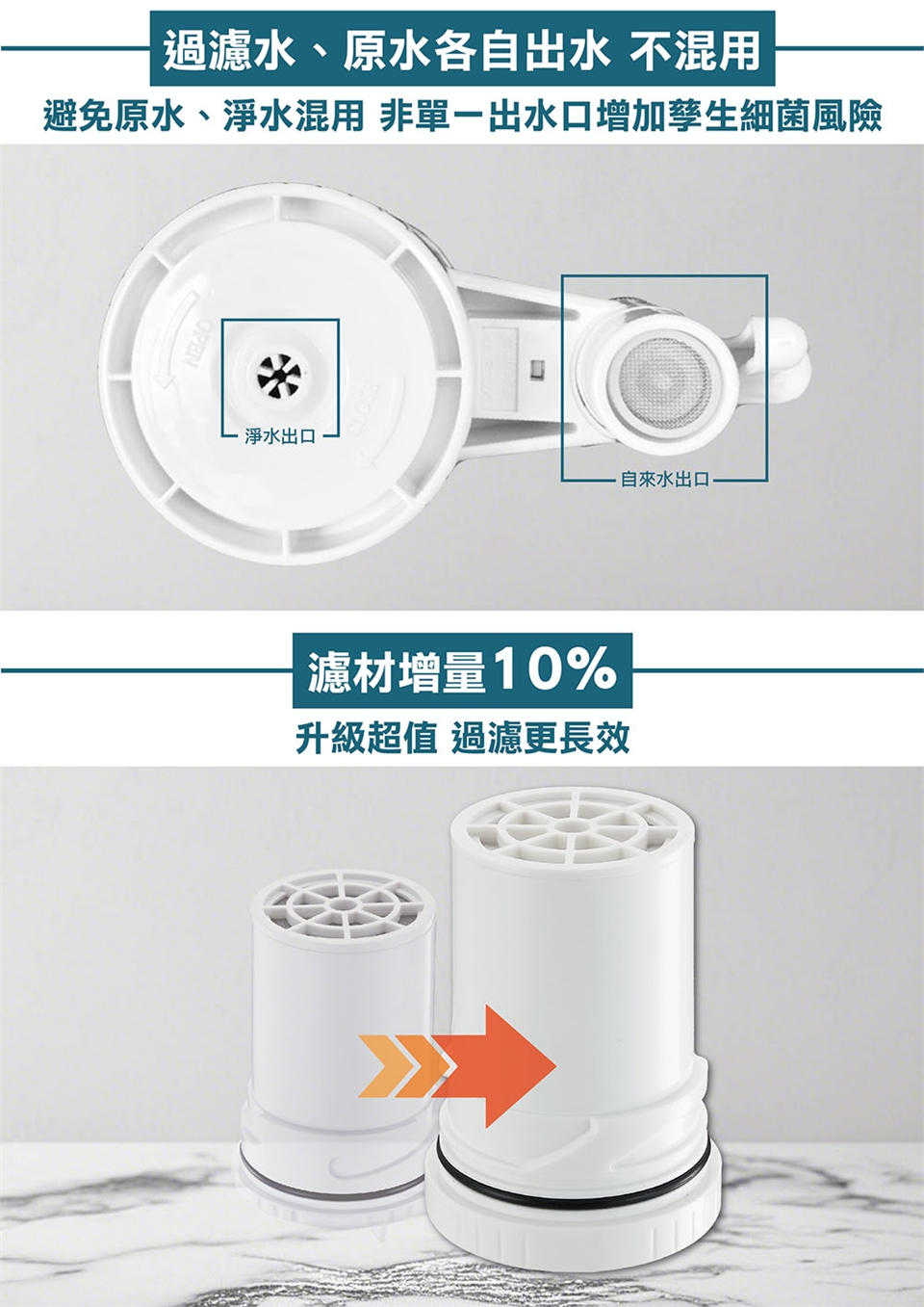 輕鬆切換的分水器,輕易選擇自來水或過濾水