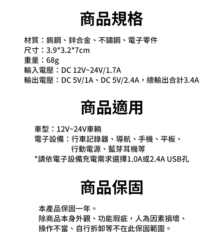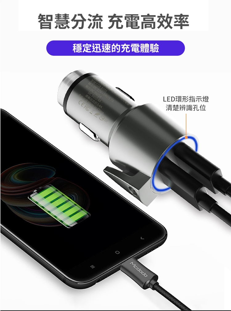 * 智慧識別晶片,分辨電子設備所需相對應電流,充電效率優