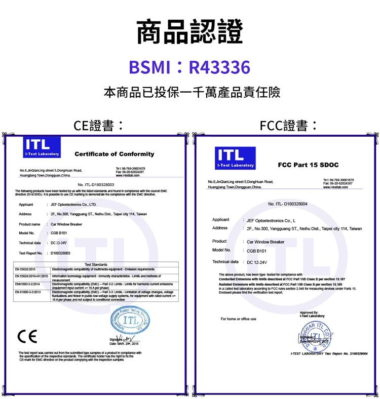 * 通過台灣BSMI、歐盟CE、美國FCC認證,千萬產品責任險,兼顧安全與品質